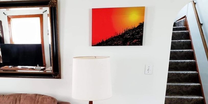Jana, a longtime friend from my high school days, was looking to decorate her outdoor patio space. She looked through my collection and spotted some southwest desert pieces that caught her eye, and thought they would do the trick! These two natural scenics below were the perfect pieces for the texture and coloring of her gathering area. Thanks Jana for letting me help you add some flare to your already beautiful outdoor socializing area!!