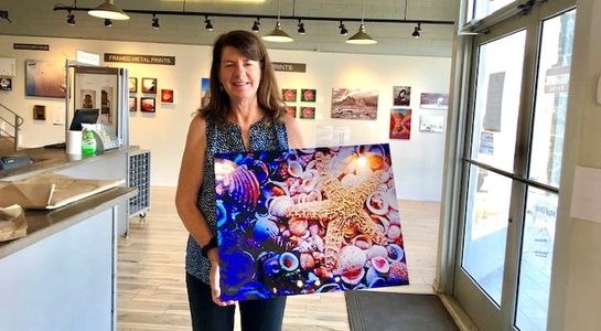 On display and for sale are small and large photo mugs, desktop canvas art, and small 8x12 canvas art pieces. You can find Marie's signature design of unique colorful and texture filled photo art pieces, in the products that TIA selected to purchase. Below are photos of Marie's products on display for sale in - "Ink". Close up shots follow.